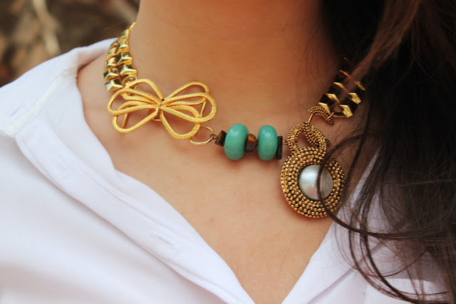 Cuanto lo vi pensé que debía comprármelo para combinarlo con los salones de H&M. Y es que el ‘azul klein’ y el naranja me gusta mucho como combinan. ¿Qué os parece a vosotros? El collar, para completar el look sencillito de hoy, lo compré en Les filles de papa . ¡Espero que os guste!