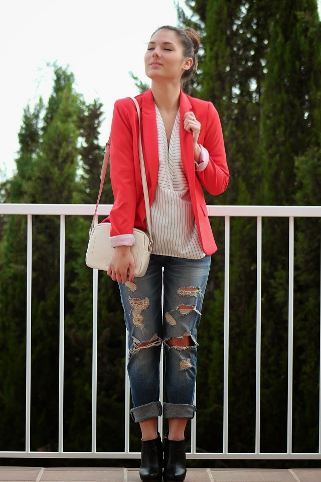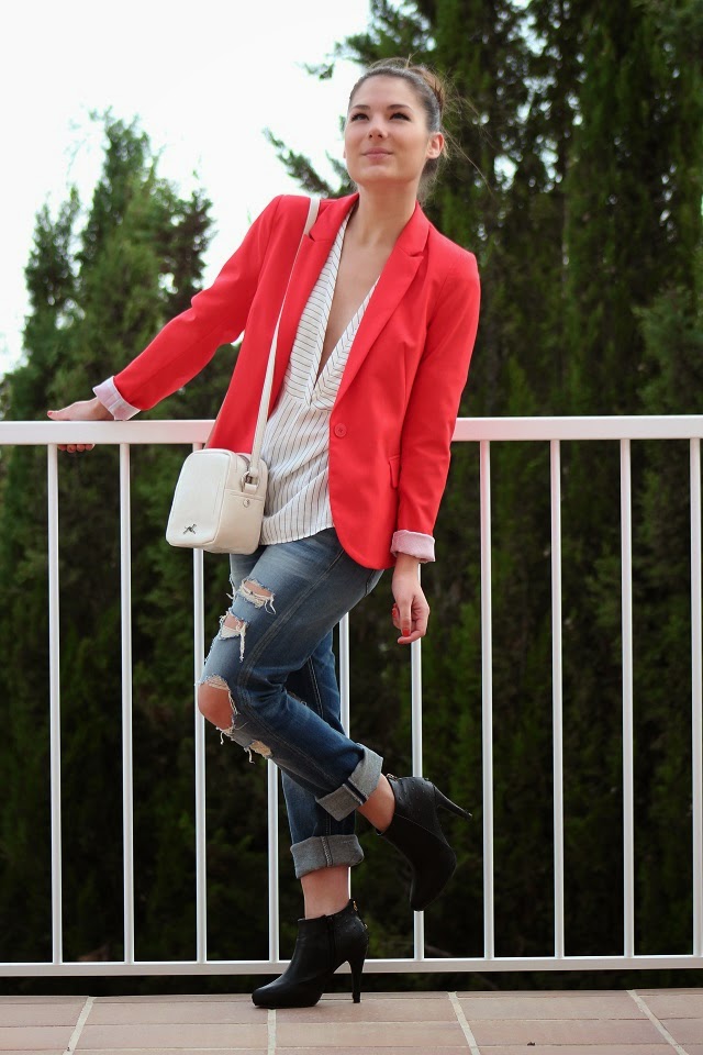 En este caso, el flúor está en la blazer que, como ya os he comentado otras veces, es una de mis prendas favoritas, ya que es muy socorrida, te la puedes poner para trabajar o para ir a una cena. Por este motivo, los colores que he utilizado en el resto del look son más neutros.