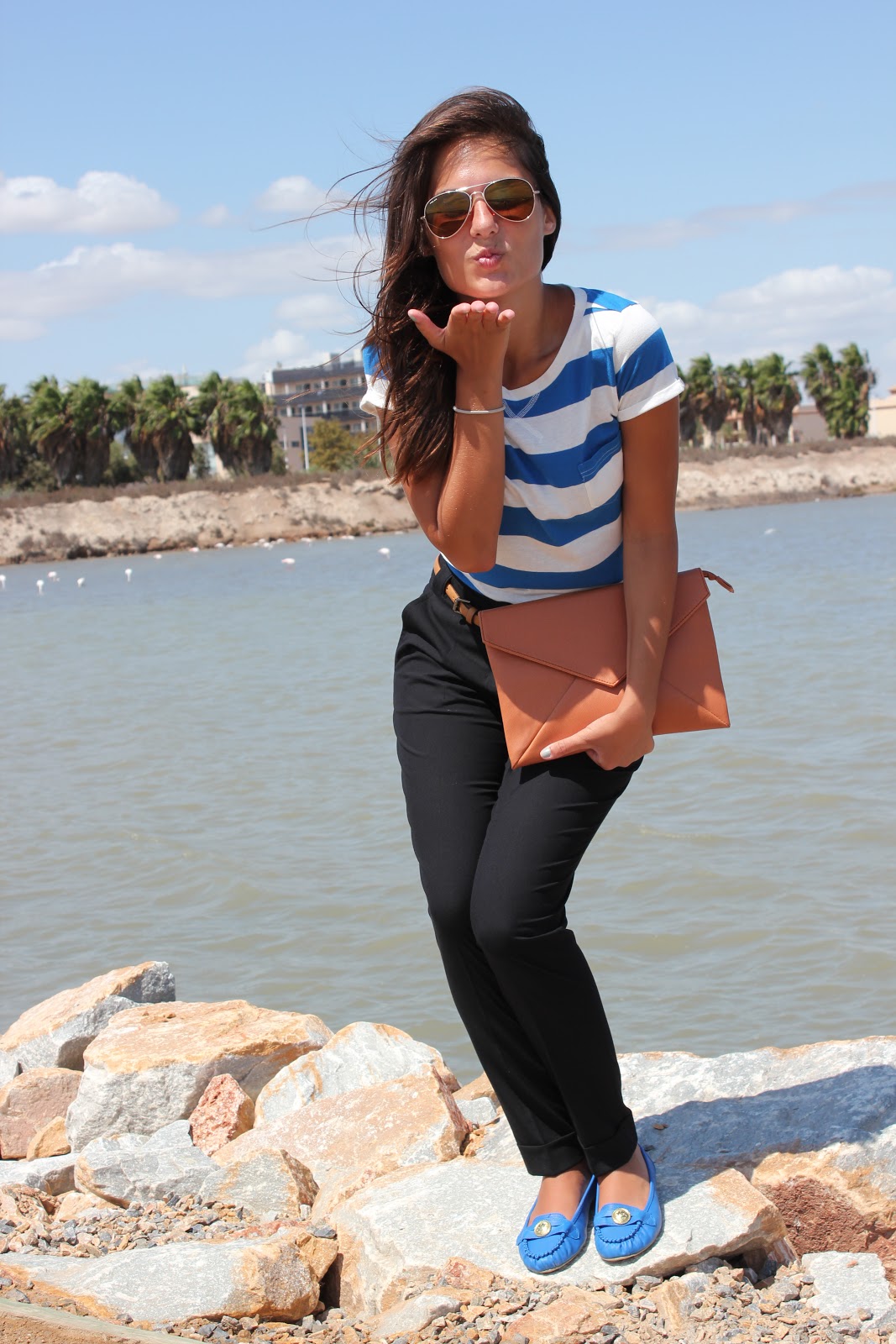 Los pantalones son de Zara y me costaron 7,95 euros; las bailarinas estaban en últimas rebajas en Tino González y me costaron en el C.C. Dos Mares… ¡tachán 8 euros!; el bolso de mano lo compré en Shana por 10 euros (es lo más caro de todo, si se puede considerar como tal). Por último, la camiseta la compré en Lefties y me costó ¡¡3,95 euros!! Lo de la camiseta todavía no me lo creo y no habéis visto nada, en el siguiente ‘look low cost’ (que ya os enseñaré) hay cosas de broma.
