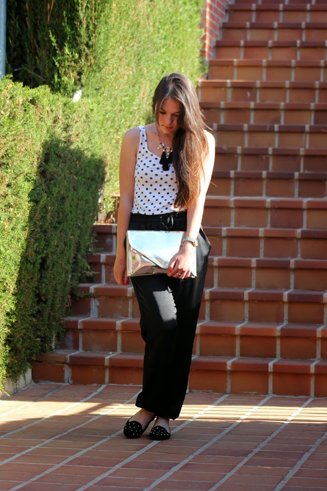 El de hoy es un look más clásico. Respecto al bolso, que suele llamar la atención cuando lo llevo, es de una tiendecita (abajo he puesto la que es) de San Pedro del Pinatar. Los pantalones, aunque son largos, son de un tejido muy finito, de otro modo serían imposibles de llevar en un día como hoy.